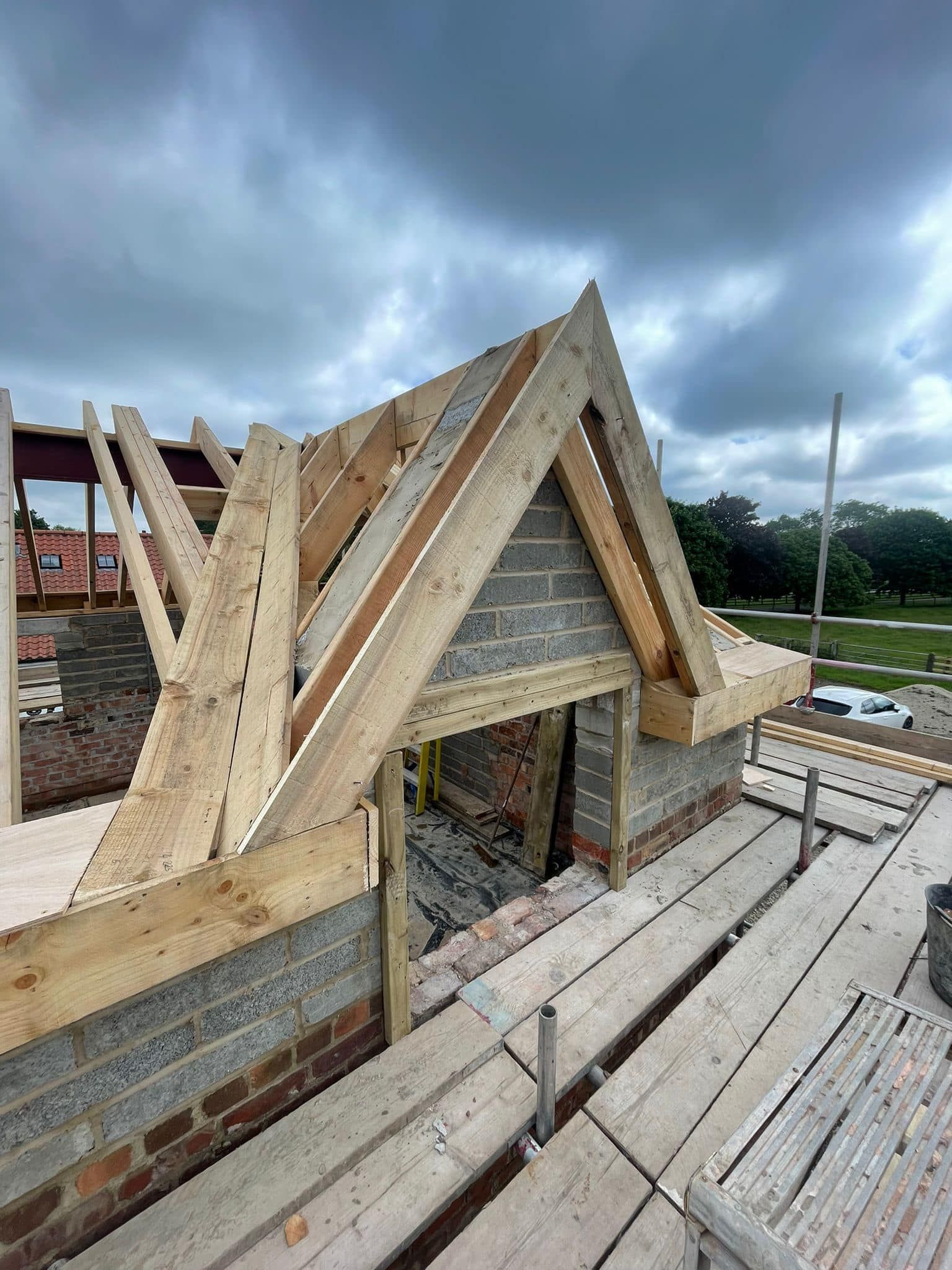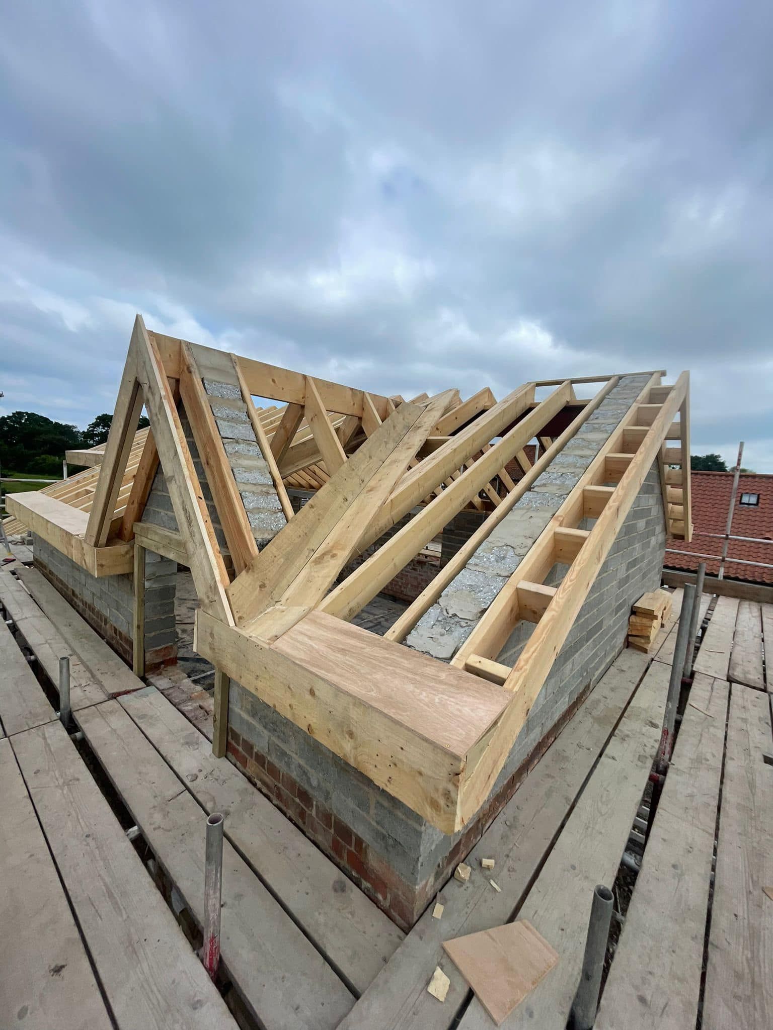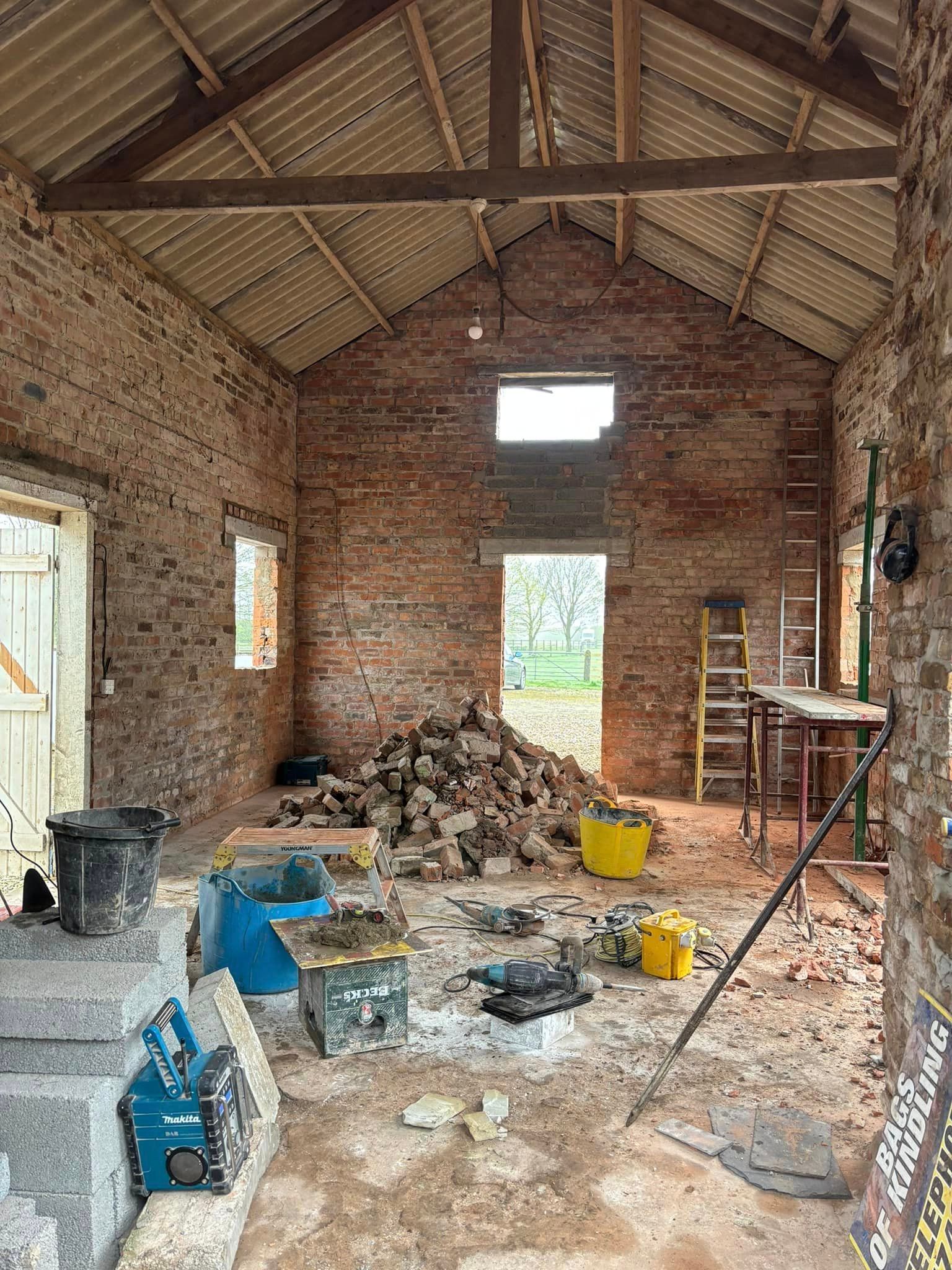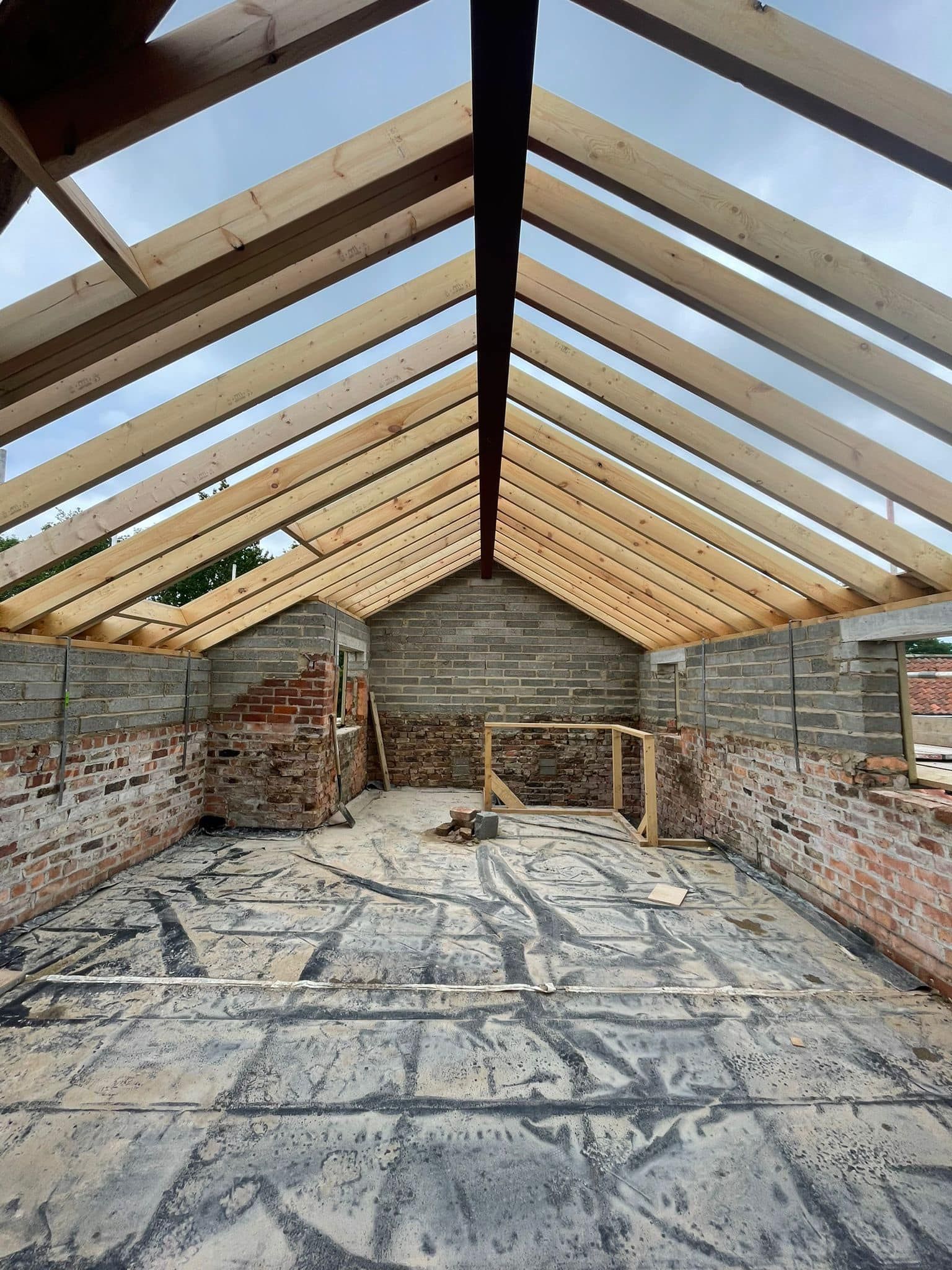 We’re going to take you on our journey of transforming the remains of this old barn, into a 3 bedroom, 2 bathroom home with open plan living and rustic design features. Here’s just some of the work we have completed so far: We’ve stripped off the old roofs, dug out floor levels for the new sub-floor, added new sub-floor, fit new floor joists and flooring to the first floor, fit new steel ridge beams and fit new timber roofs to barn.